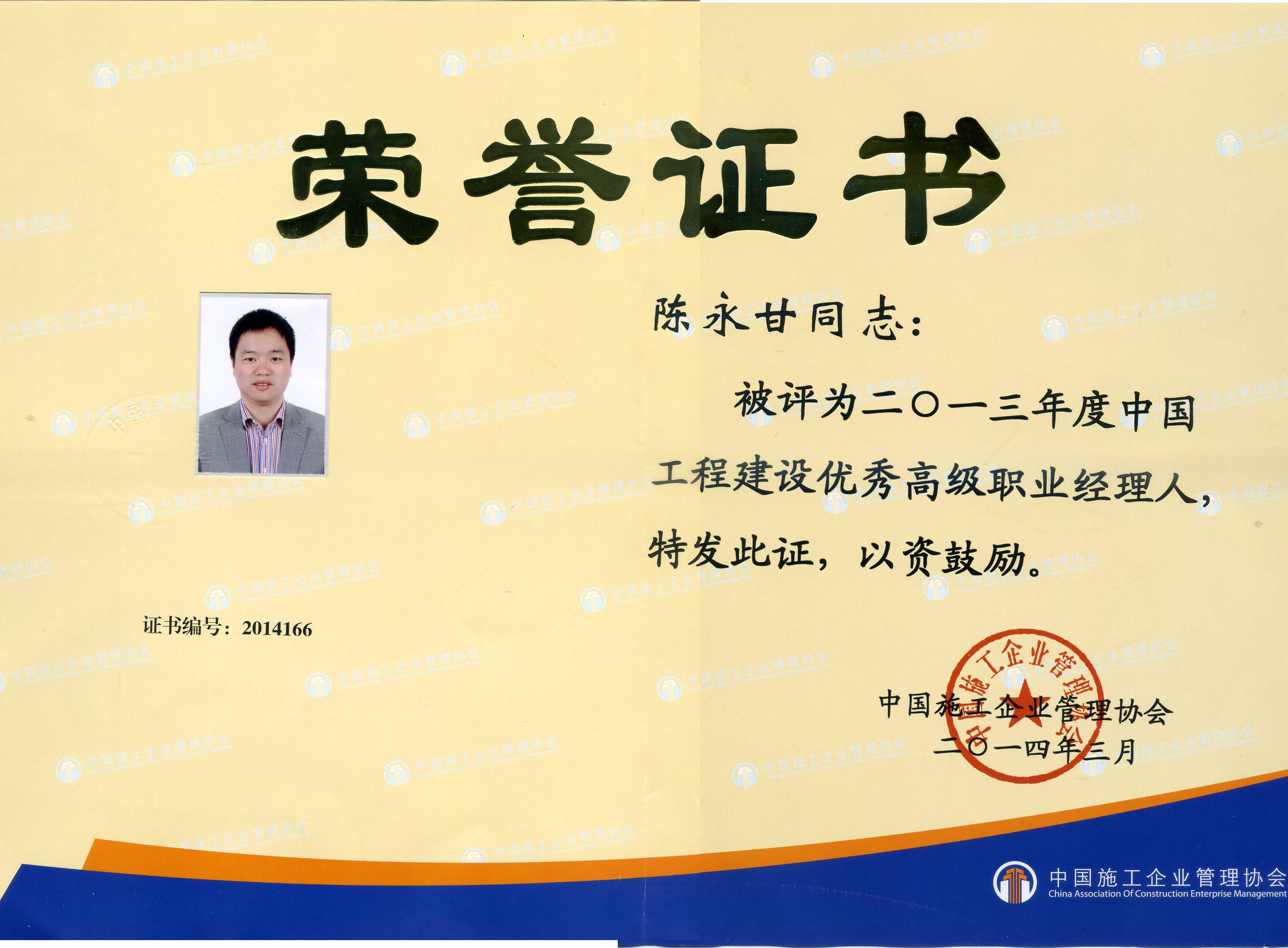 2015年金華市優(yōu)秀企業(yè)家(陳永甘)